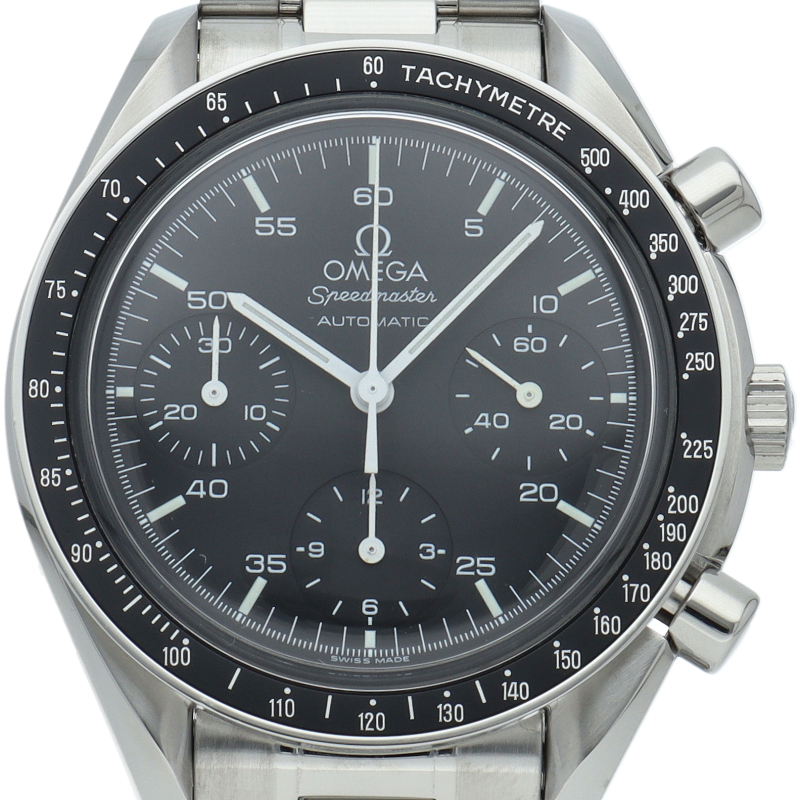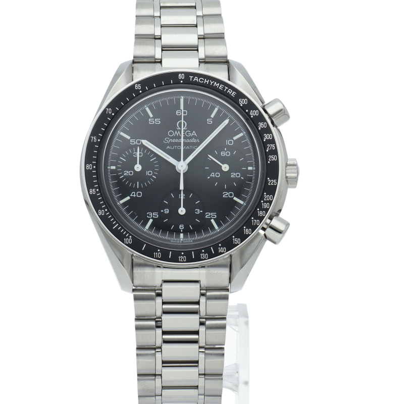 オメガを代表する人気シリーズ「スピードマスター」。プラ風防を使用したレトロな雰囲気かつシンプルにまとまったデザインがスタイルを選ばずにご使用いただけます。