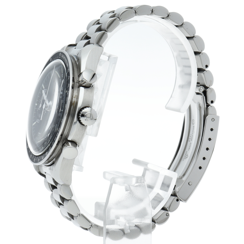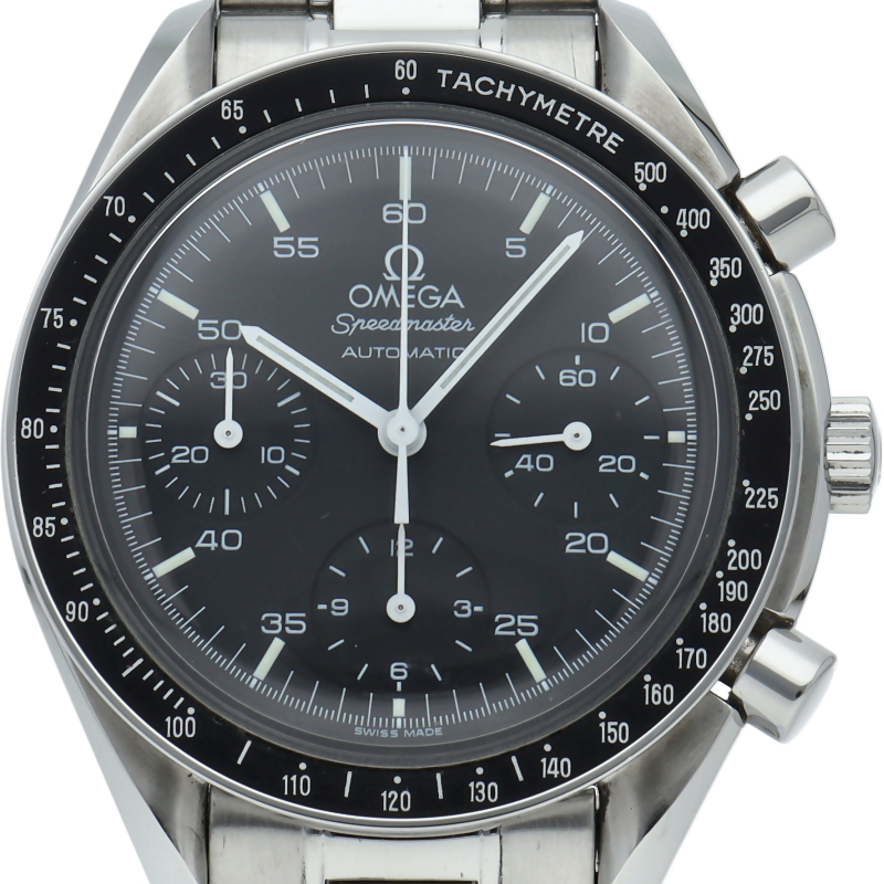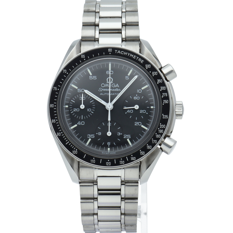 オメガを代表する人気シリーズ「スピードマスター」。プラ風防を使用したレトロな雰囲気かつシンプルにまとまったデザインがスタイルを選ばずにご使用いただけます。