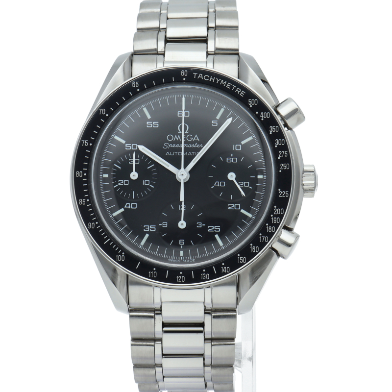 オメガを代表する人気シリーズ「スピードマスター」。プラ風防を使用したレトロな雰囲気かつシンプルにまとまったデザインがスタイルを選ばずにご使用いただけます。