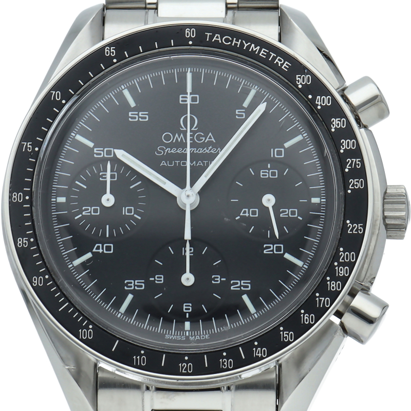 オメガを代表する人気シリーズ「スピードマスター」。プラ風防を使用したレトロな雰囲気かつシンプルにまとまったデザインがスタイルを選ばずにご使用いただけます。
