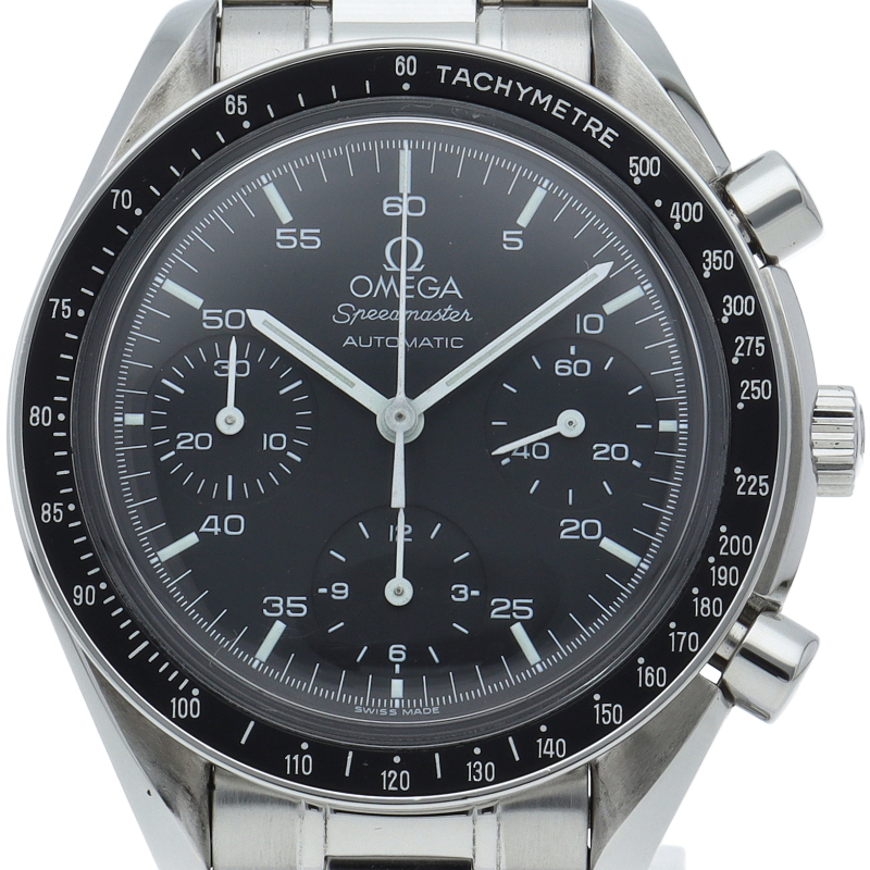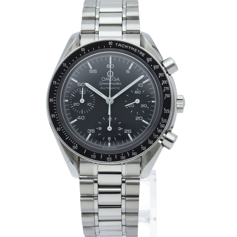 オメガを代表する人気シリーズ「スピードマスター」。プラ風防を使用したレトロな雰囲気かつシンプルにまとまったデザインがスタイルを選ばずにご使用いただけます。