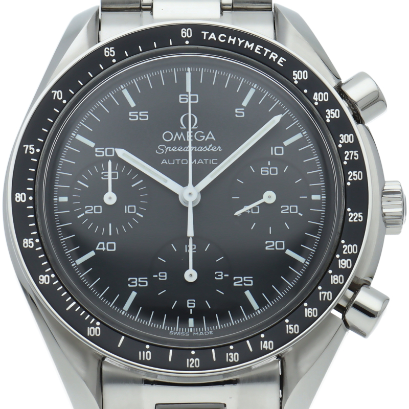 オメガを代表する人気シリーズ「スピードマスター」。プラ風防を使用したレトロな雰囲気かつシンプルにまとまったデザインがスタイルを選ばずにご使用いただけます。