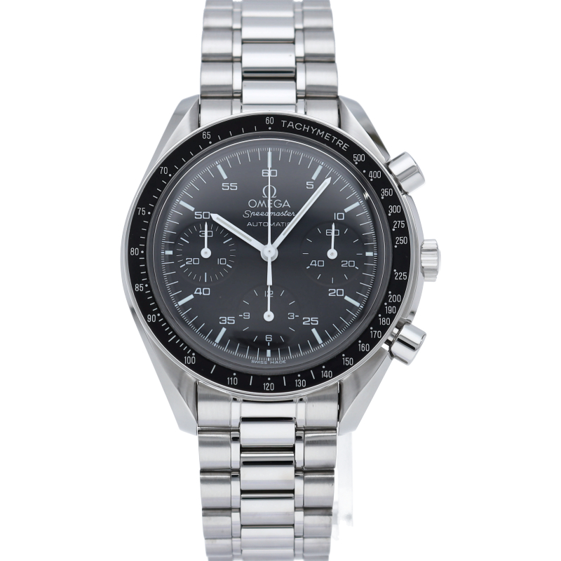 オメガを代表する人気シリーズ「スピードマスター」。プラ風防を使用したレトロな雰囲気かつシンプルにまとまったデザインがスタイルを選ばずにご使用いただけます。