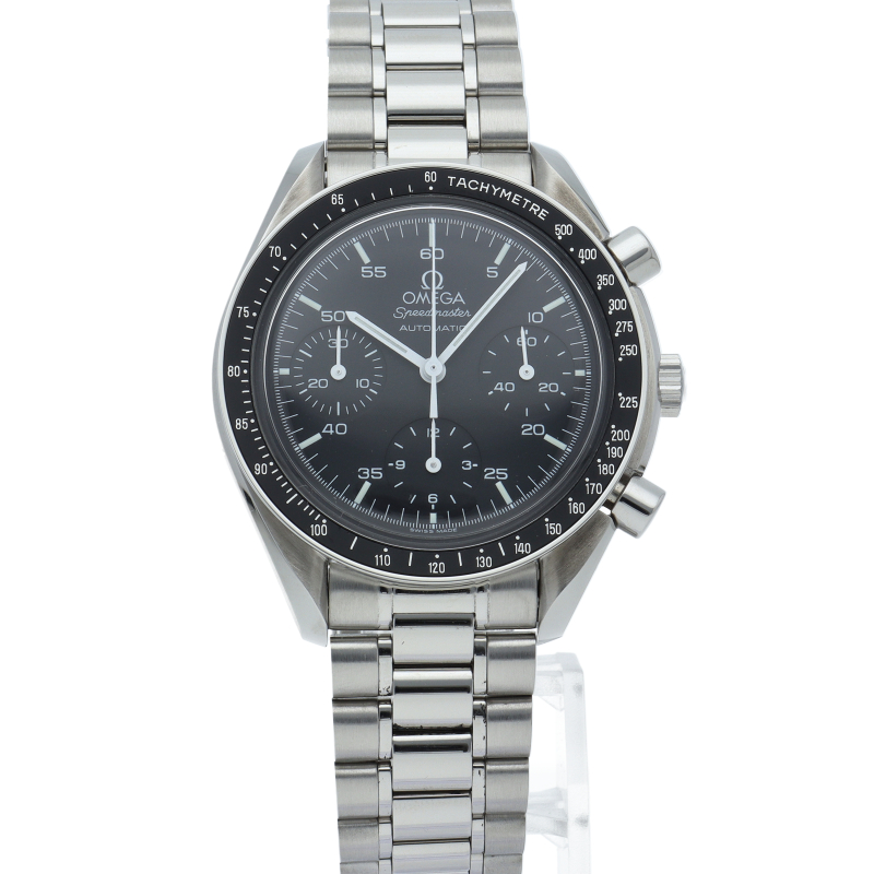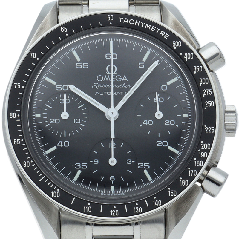 オメガを代表する人気シリーズ「スピードマスター」。プラ風防を使用したレトロな雰囲気かつシンプルにまとまったデザインがスタイルを選ばずにご使用いただけます。