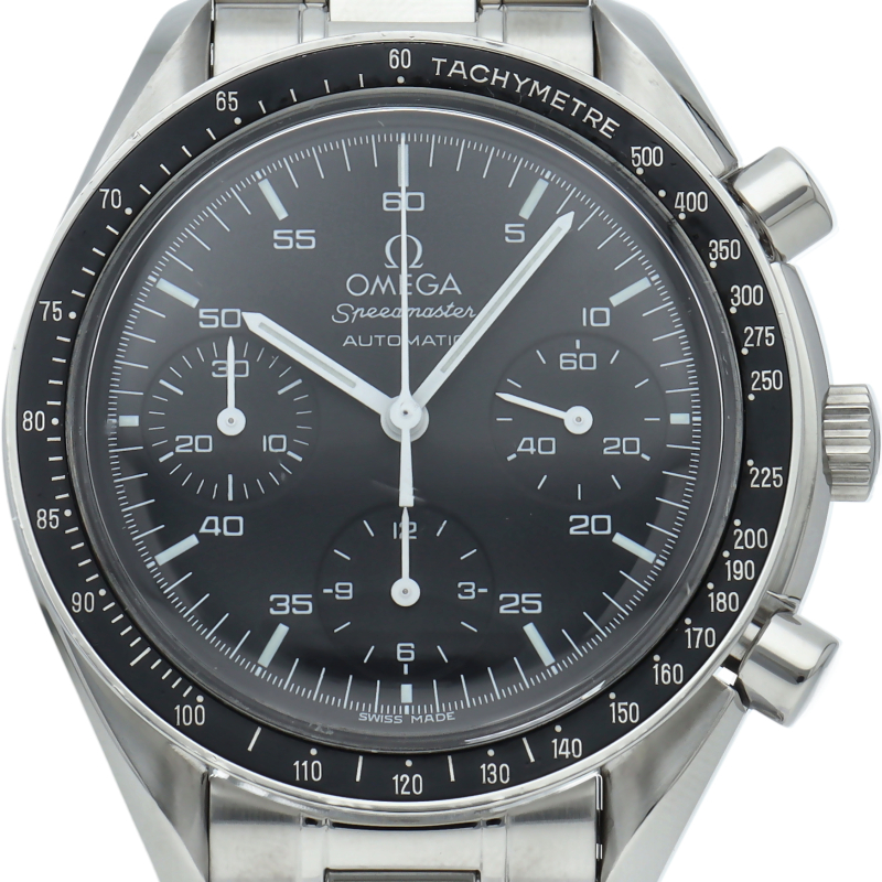 オメガを代表する人気シリーズ「スピードマスター」。プラ風防を使用したレトロな雰囲気かつシンプルにまとまったデザインがスタイルを選ばずにご使用いただけます。