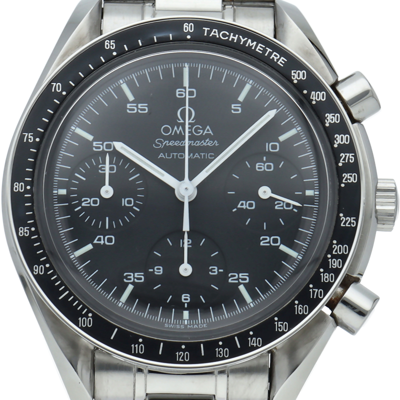 オメガを代表する人気シリーズ「スピードマスター」。プラ風防を使用したレトロな雰囲気かつシンプルにまとまったデザインがスタイルを選ばずにご使用いただけます。