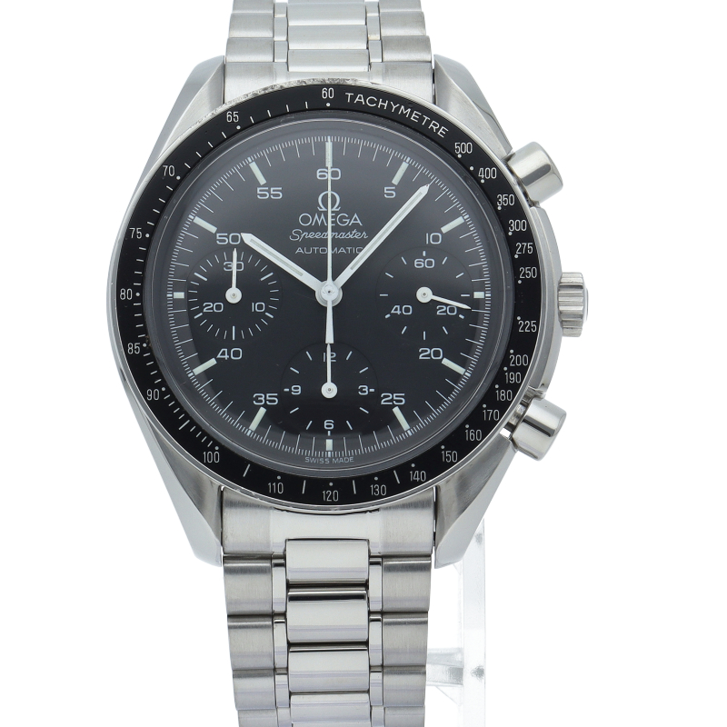 オメガを代表する人気シリーズ「スピードマスター」。プラ風防を使用したレトロな雰囲気かつシンプルにまとまったデザインがスタイルを選ばずにご使用いただけます。
