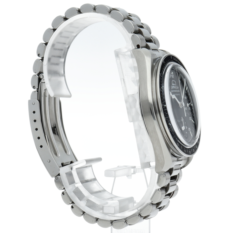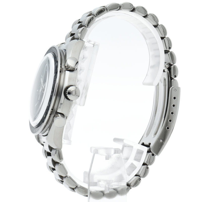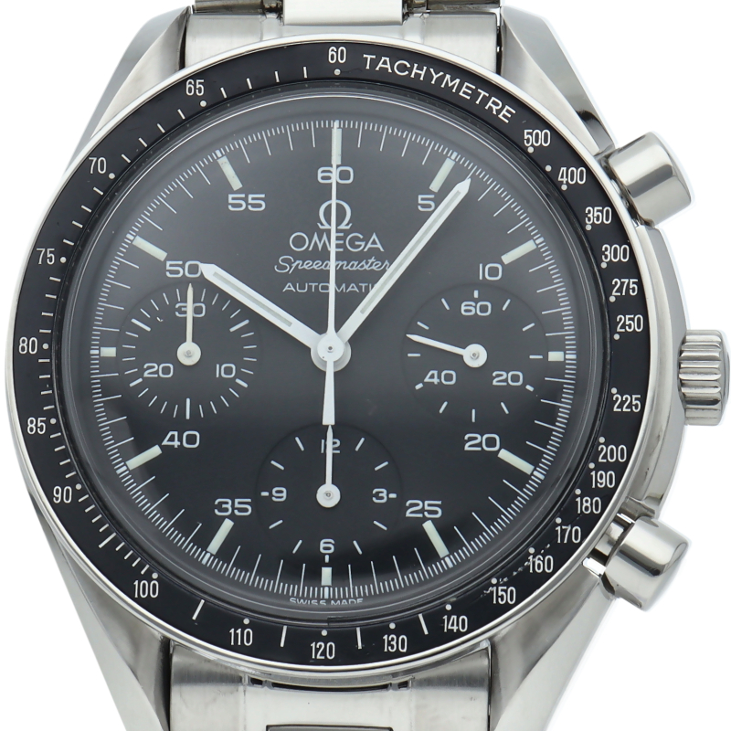 オメガを代表する人気シリーズ「スピードマスター」。プラ風防を使用したレトロな雰囲気かつシンプルにまとまったデザインがスタイルを選ばずにご使用いただけます。