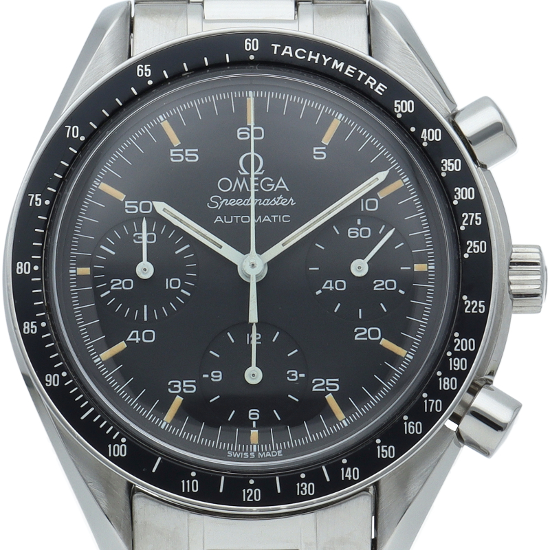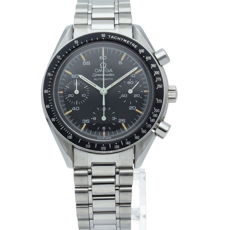 オメガを代表する人気シリーズ「スピードマスター」。プラ風防を使用したレトロな雰囲気かつシンプルにまとまったデザインがスタイルを選ばずにご使用いただけます。
