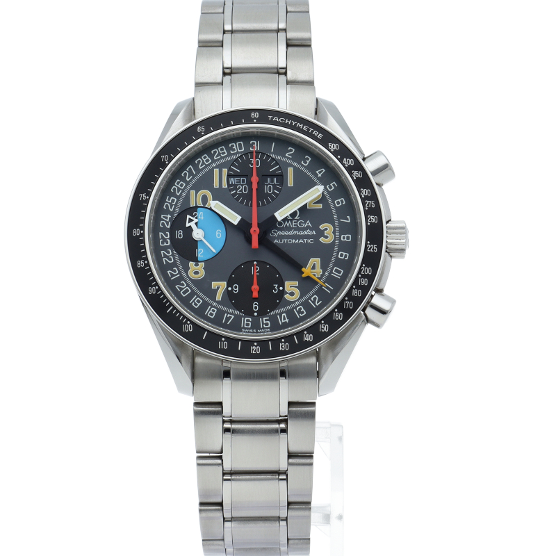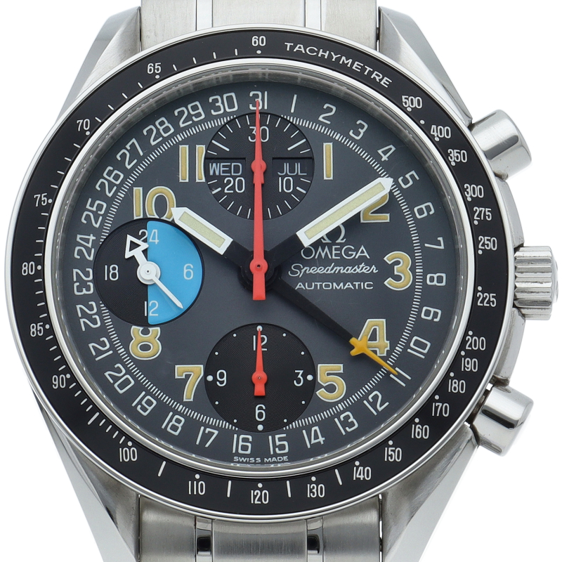 オメガを代表する人気シリーズ「スピードマスター」。トリプルカレンダーやタキメーターベゼル等多機能かつデザイン性も優れている実用的な時計です。