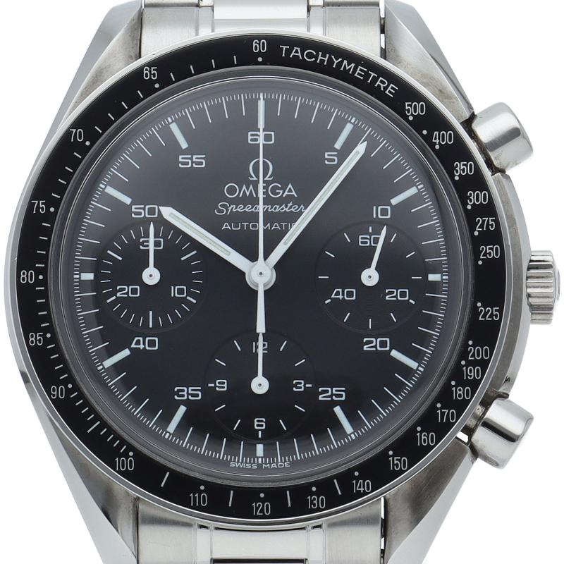 オメガを代表する人気シリーズ「スピードマスター」。プラ風防を使用したレトロな雰囲気かつシンプルにまとまったデザインがスタイルを選ばずにご使用いただけます。