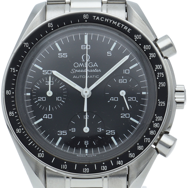 オメガを代表する人気シリーズ「スピードマスター」。プラ風防を使用したレトロな雰囲気かつシンプルにまとまったデザインがスタイルを選ばずにご使用いただけます。