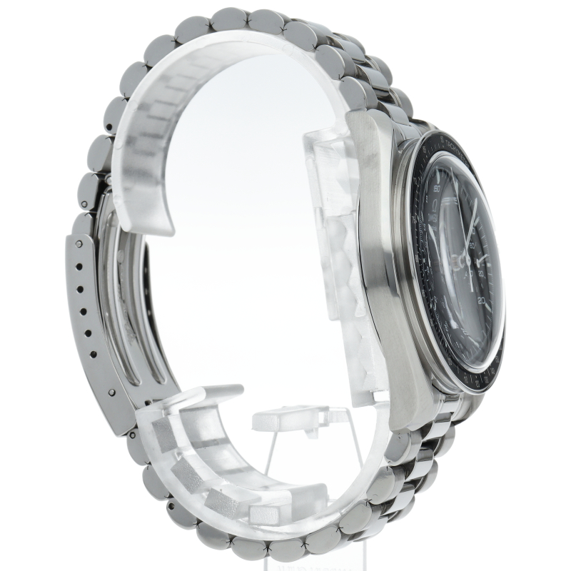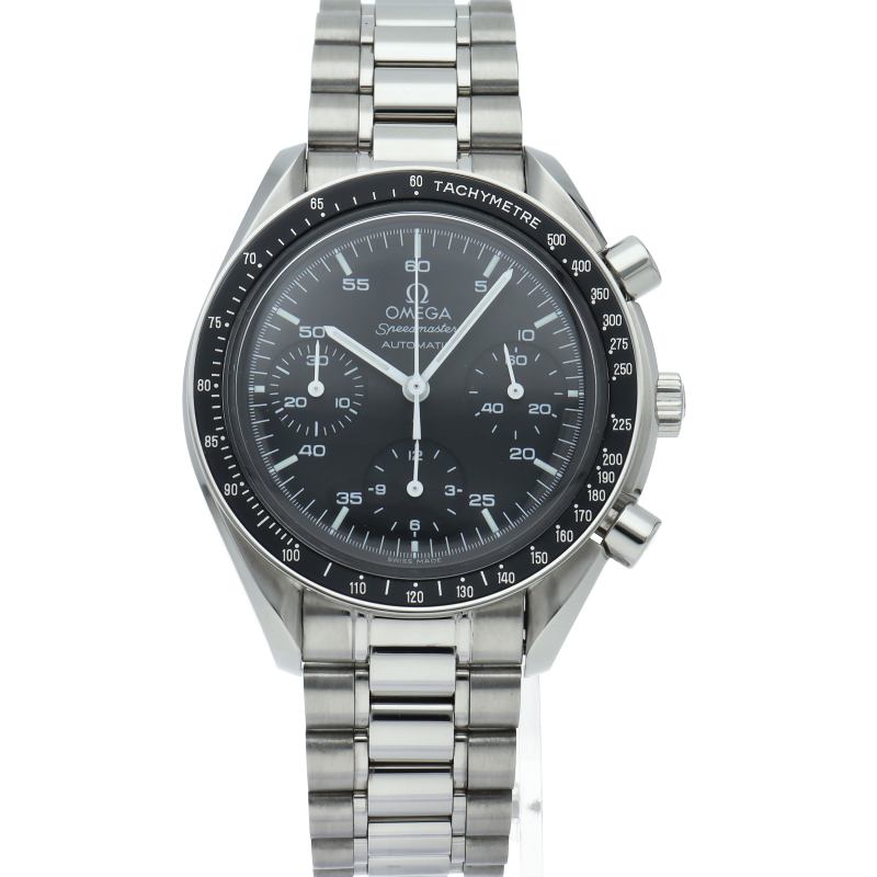 オメガを代表する人気シリーズ「スピードマスター」。プラ風防を使用したレトロな雰囲気かつシンプルにまとまったデザインがスタイルを選ばずにご使用いただけます。