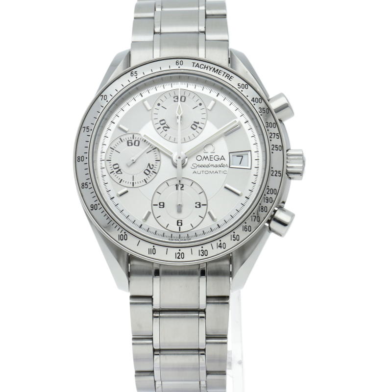 オメガの代表的な人気シリーズ「スピードマスター・デイト」。クロノグラフ・デイト表示機能付きと便利で実用性のある1本です。