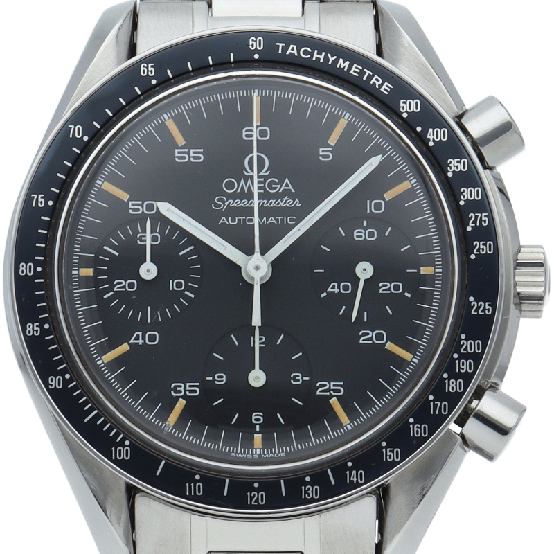 オメガを代表する人気シリーズ「スピードマスター」。プラ風防を使用したレトロな雰囲気かつシンプルにまとまったデザインがスタイルを選ばずにご使用いただけます。