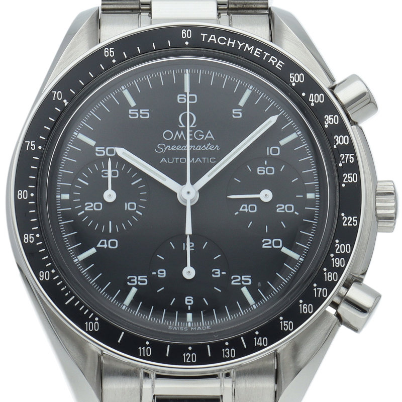 オメガを代表する人気シリーズ「スピードマスター」。プラ風防を使用したレトロな雰囲気かつシンプルにまとまったデザインがスタイルを選ばずにご使用いただけます。