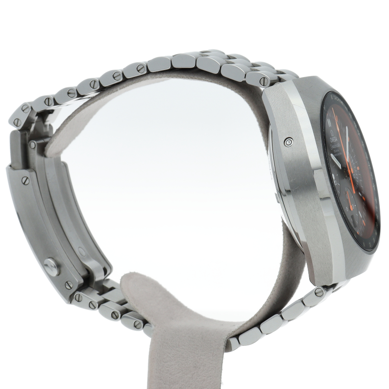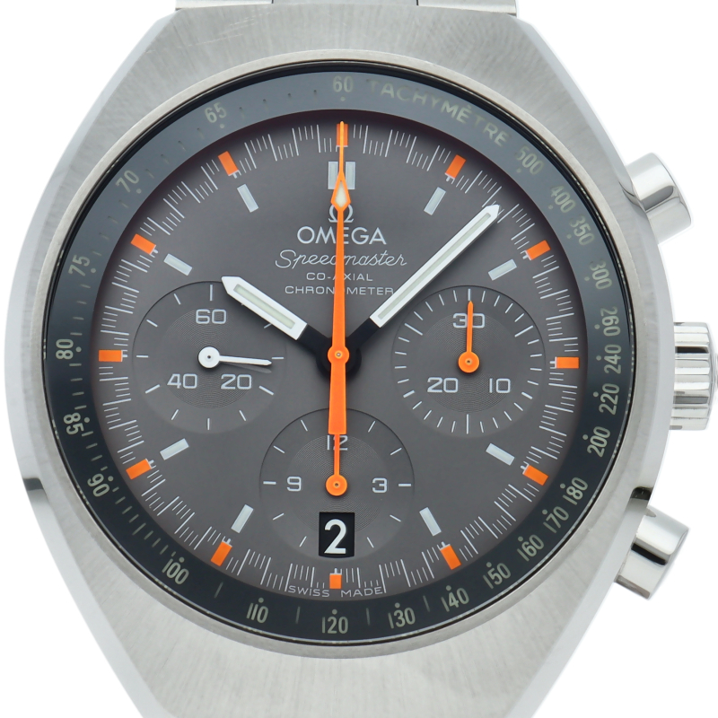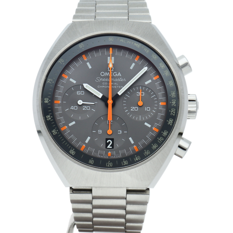 Si14シリコン製ヒゲゼンマイとコラムホイール式クロノグラフのキャリバー「コーアクシャル cal.3330」を搭載し、1969年に発表された「スピードマスター Mark.II」が復刻させたモデル。また文字盤もオリジナルには無かったデイトを6時位置に置き、実用性が向上。グレー文字盤にオレンジ針などレトロなデザインにオメガの最新技術を併せた現代のマスターピースとなっています。