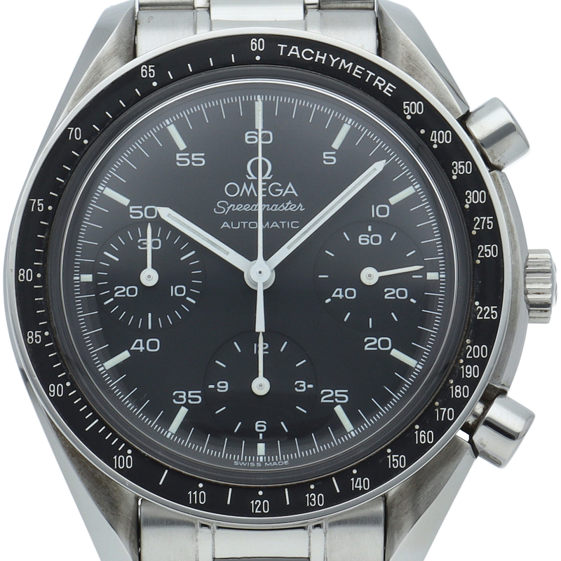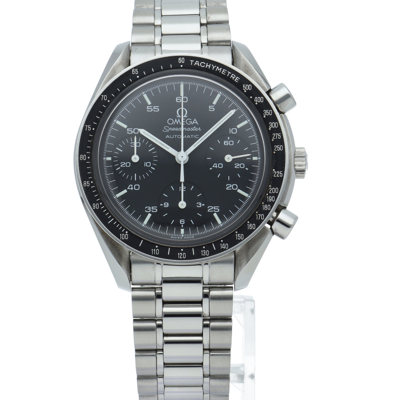 オメガを代表する人気シリーズ「スピードマスター」。プラ風防を使用したレトロな雰囲気かつシンプルにまとまったデザインがスタイルを選ばずにご使用いただけます。