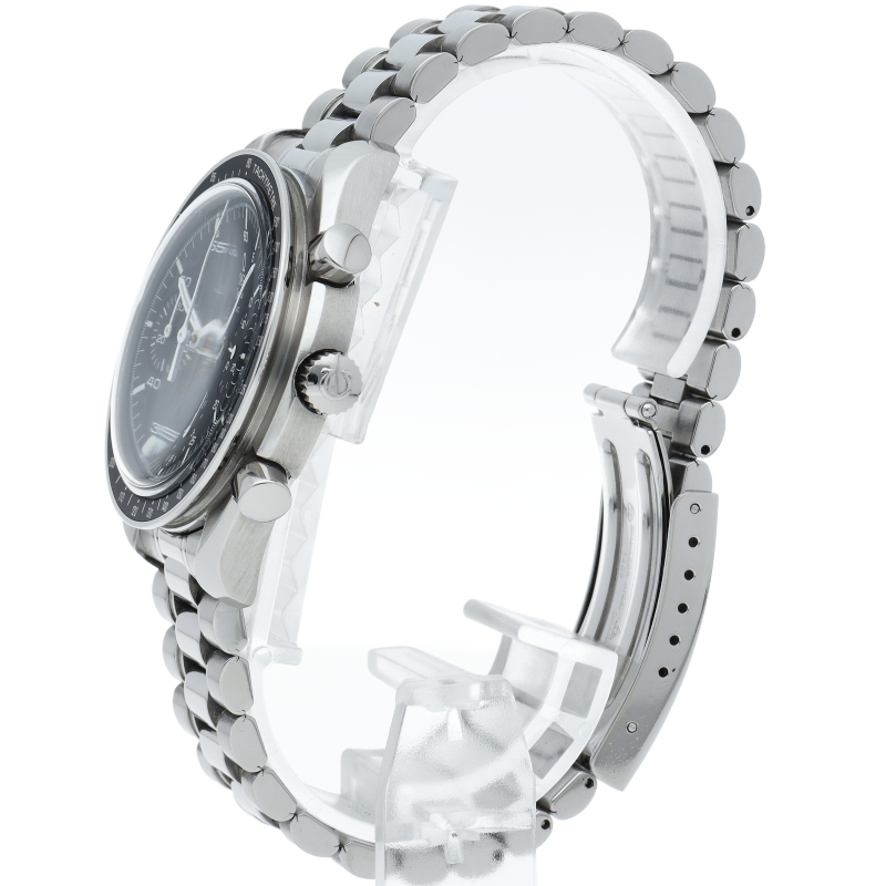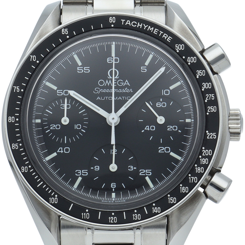 オメガを代表する人気シリーズ「スピードマスター」。プラ風防を使用したレトロな雰囲気かつシンプルにまとまったデザインがスタイルを選ばずにご使用いただけます。