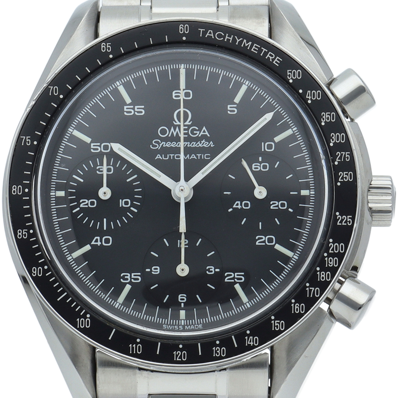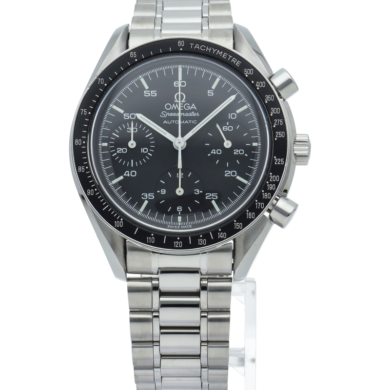 オメガを代表する人気シリーズ「スピードマスター」。プラ風防を使用したレトロな雰囲気かつシンプルにまとまったデザインがスタイルを選ばずにご使用いただけます。