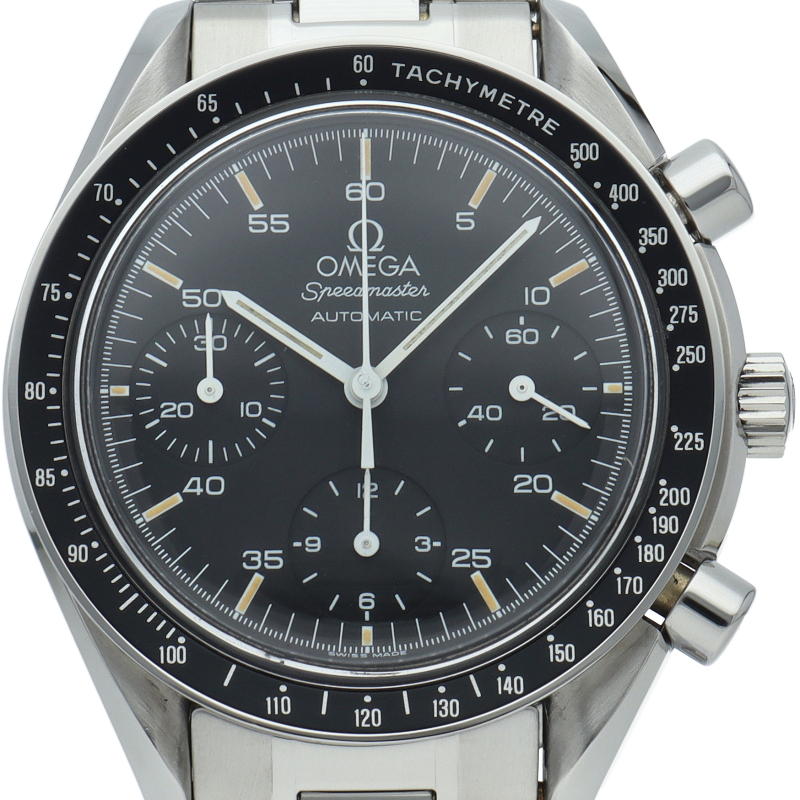 オメガを代表する人気シリーズ「スピードマスター」。プラ風防を使用したレトロな雰囲気かつシンプルにまとまったデザインがスタイルを選ばずにご使用いただけます。