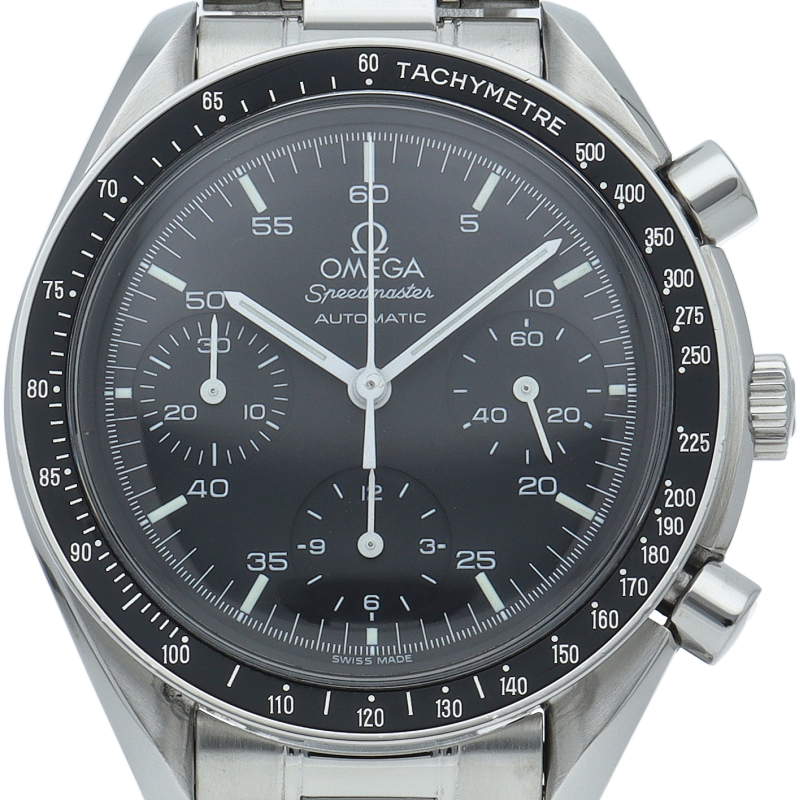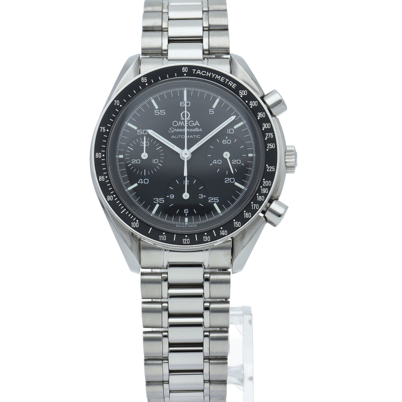 オメガを代表する人気シリーズ「スピードマスター」。プラ風防を使用したレトロな雰囲気かつシンプルにまとまったデザインがスタイルを選ばずにご使用いただけます。