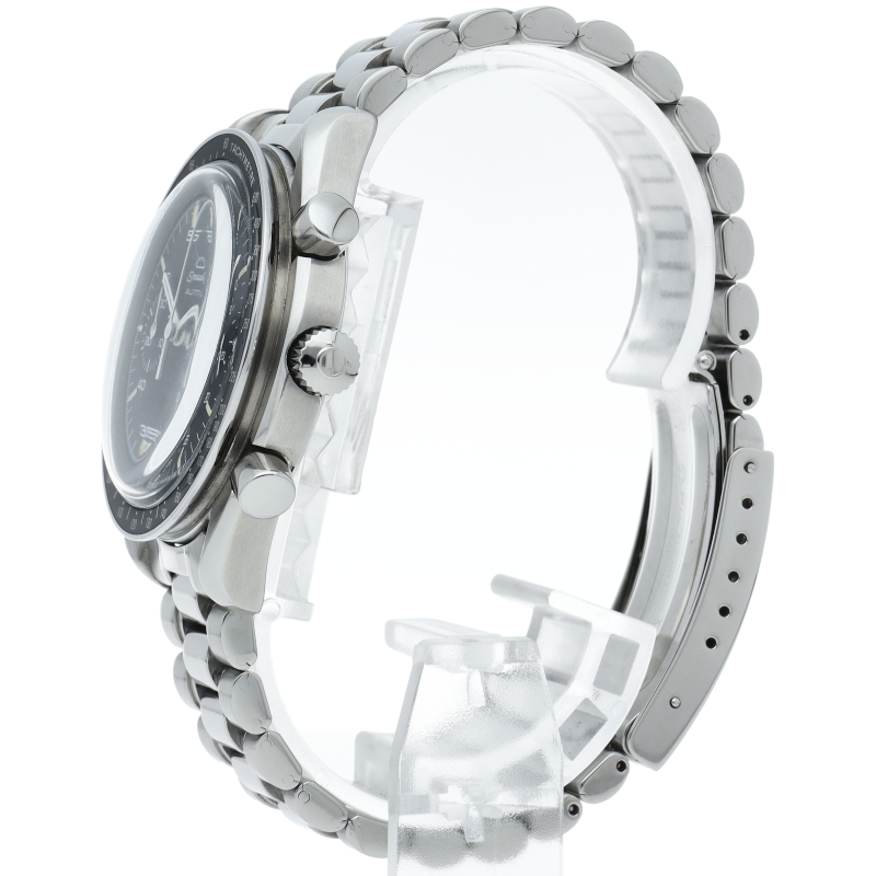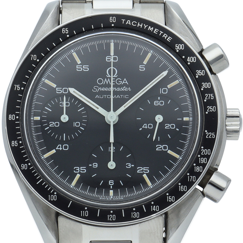 オメガを代表する人気シリーズ「スピードマスター」。プラ風防を使用したレトロな雰囲気かつシンプルにまとまったデザインがスタイルを選ばずにご使用いただけます。