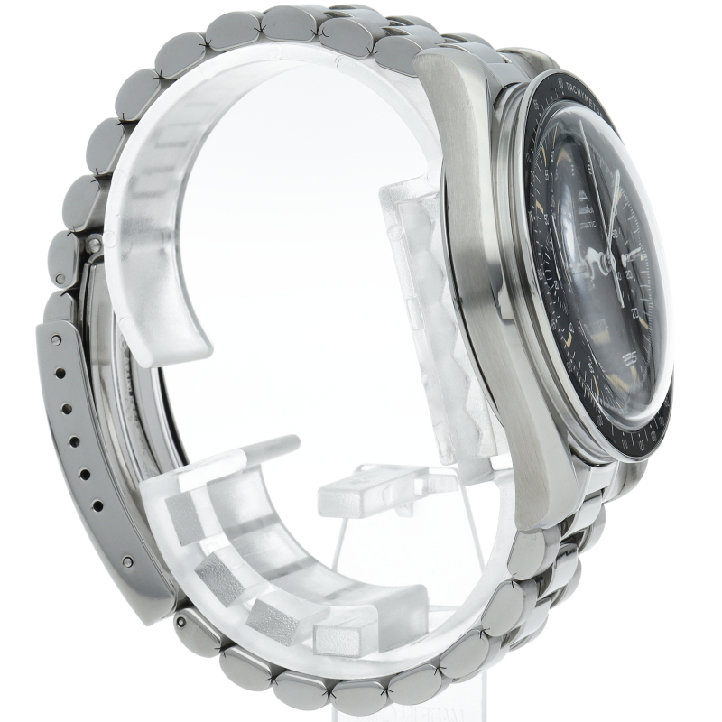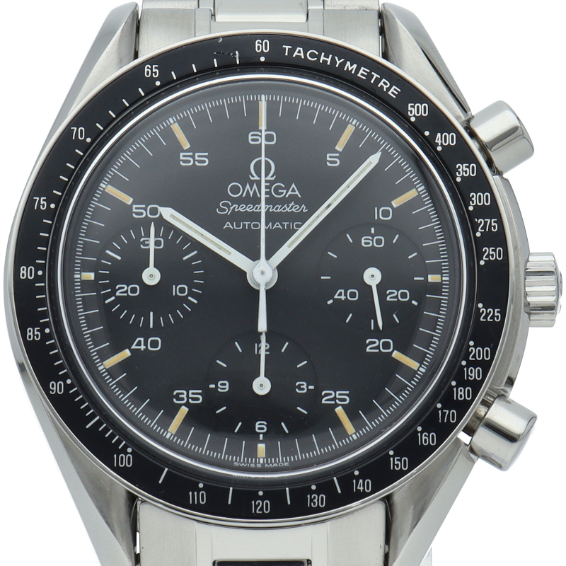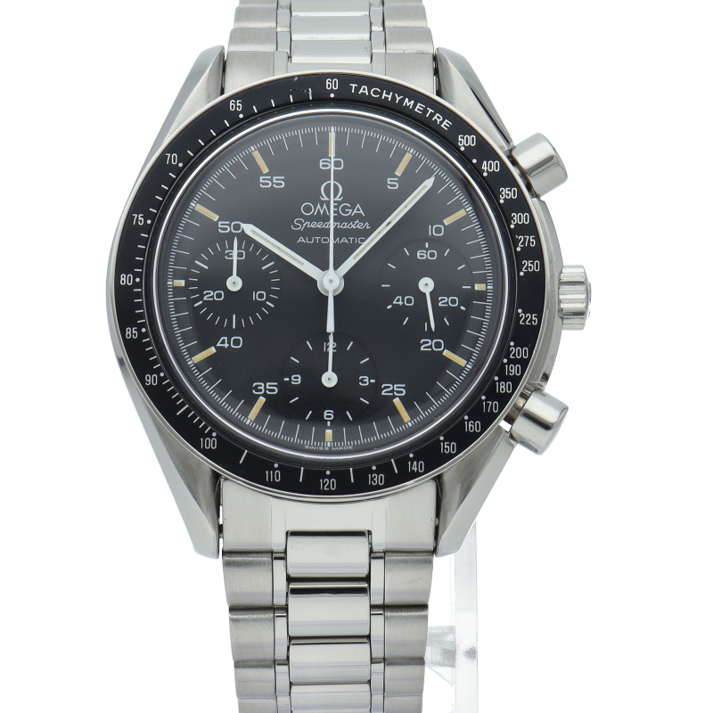 オメガを代表する人気シリーズ「スピードマスター」。プラ風防を使用したレトロな雰囲気かつシンプルにまとまったデザインがスタイルを選ばずにご使用いただけます。