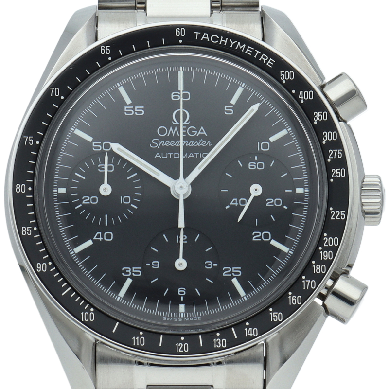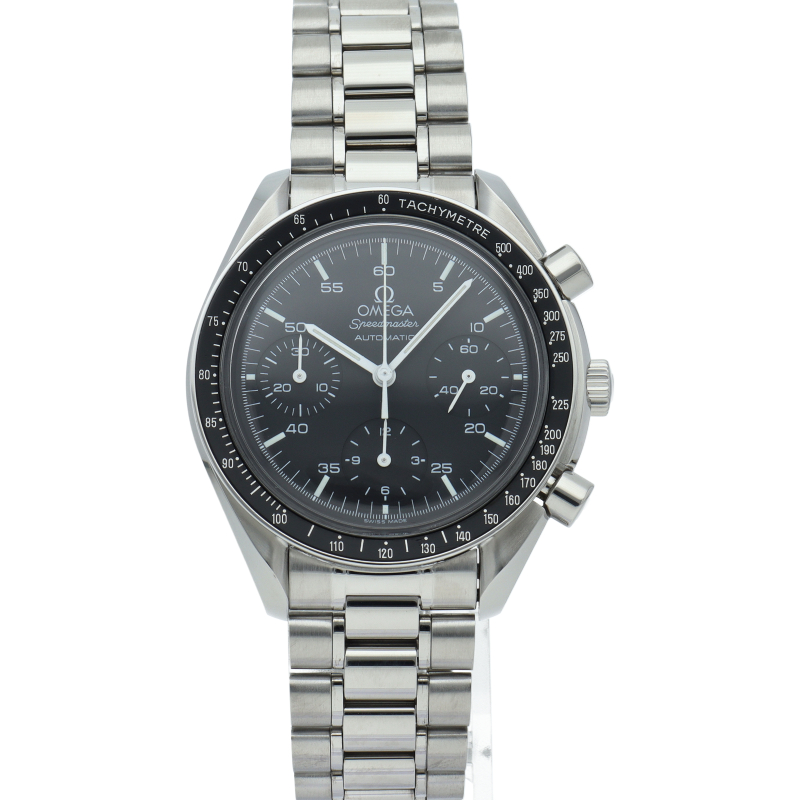 オメガを代表する人気シリーズ「スピードマスター」。プラ風防を使用したレトロな雰囲気かつシンプルにまとまったデザインがスタイルを選ばずにご使用いただけます。