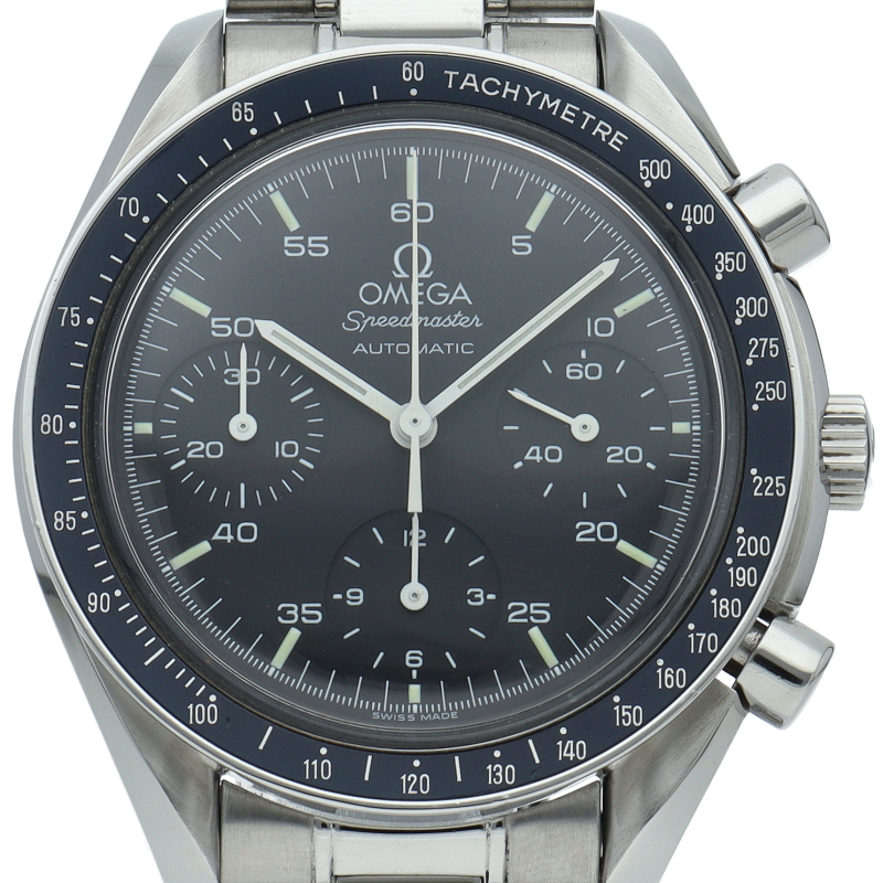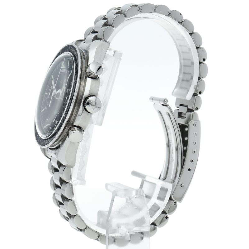 オメガを代表する人気シリーズ「スピードマスター」。プラ風防を使用したレトロな雰囲気かつシンプルにまとまったデザインがスタイルを選ばずにご使用いただけます。