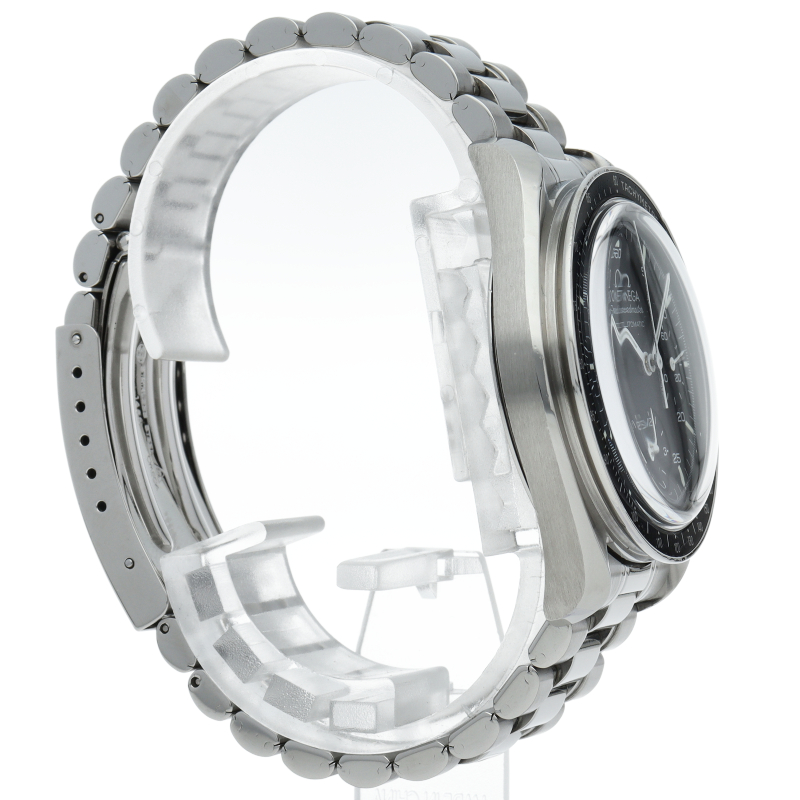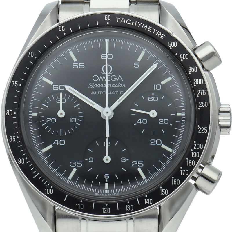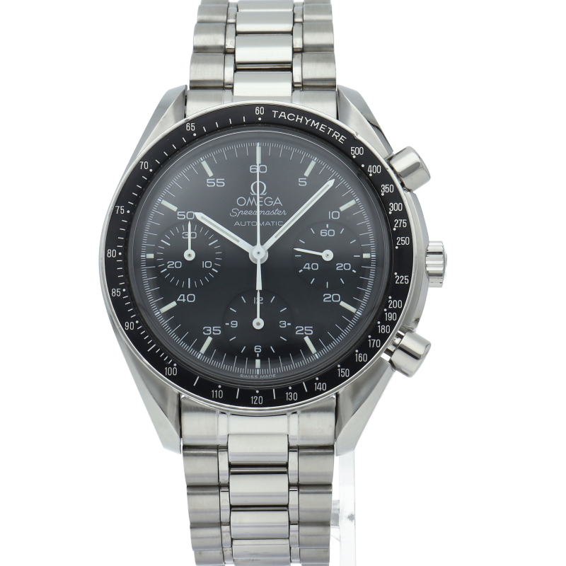 オメガを代表する人気シリーズ「スピードマスター」。プラ風防を使用したレトロな雰囲気かつシンプルにまとまったデザインがスタイルを選ばずにご使用いただけます。