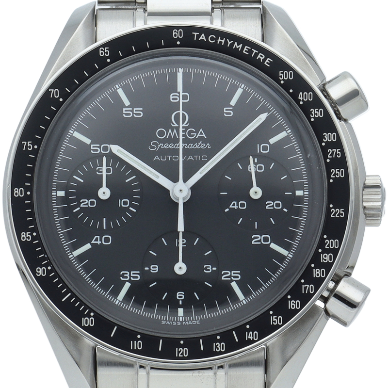 オメガを代表する人気シリーズ「スピードマスター」。プラ風防を使用したレトロな雰囲気かつシンプルにまとまったデザインがスタイルを選ばずにご使用いただけます。