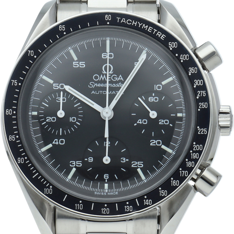 オメガを代表する人気シリーズ「スピードマスター」。プラ風防を使用したレトロな雰囲気かつシンプルにまとまったデザインがスタイルを選ばずにご使用いただけます。