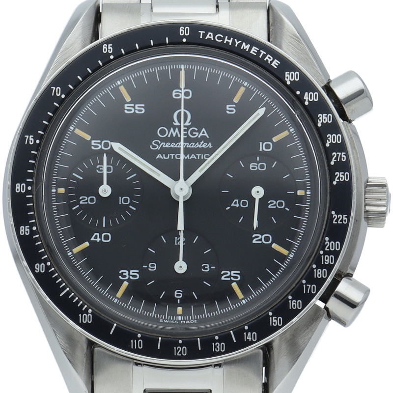 オメガを代表する人気シリーズ「スピードマスター」。プラ風防を使用したレトロな雰囲気かつシンプルにまとまったデザインがスタイルを選ばずにご使用いただけます。
