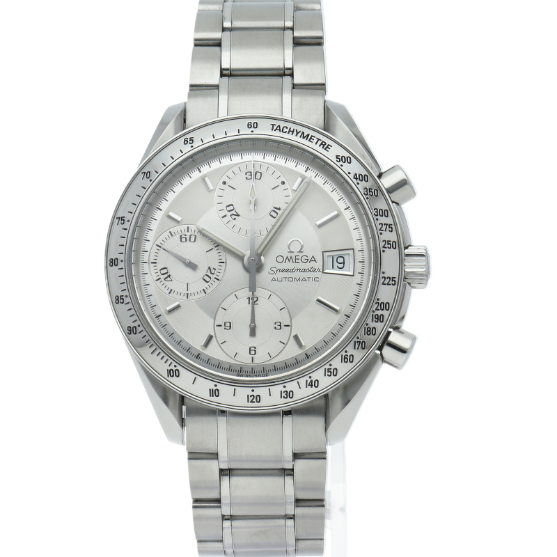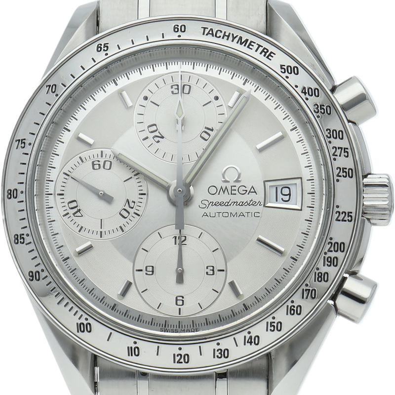 オメガの代表的な人気シリーズ「スピードマスター・デイト」。クロノグラフ・デイト表示機能付きと便利で実用性のある1本です。