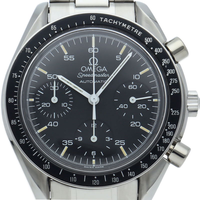 オメガを代表する人気シリーズ「スピードマスター」。プラ風防を使用したレトロな雰囲気かつシンプルにまとまったデザインがスタイルを選ばずにご使用いただけます。