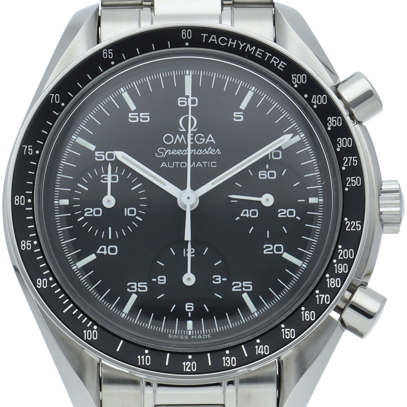 オメガを代表する人気シリーズ「スピードマスター」。プラ風防を使用したレトロな雰囲気かつシンプルにまとまったデザインがスタイルを選ばずにご使用いただけます。