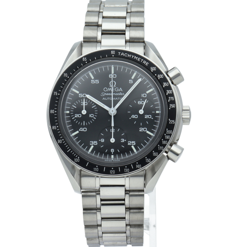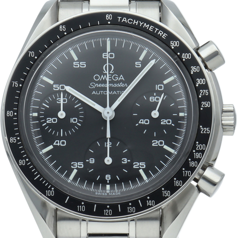 オメガを代表する人気シリーズ「スピードマスター」。プラ風防を使用したレトロな雰囲気かつシンプルにまとまったデザインがスタイルを選ばずにご使用いただけます。