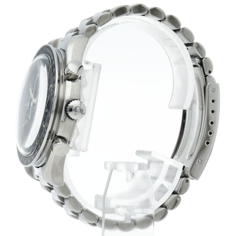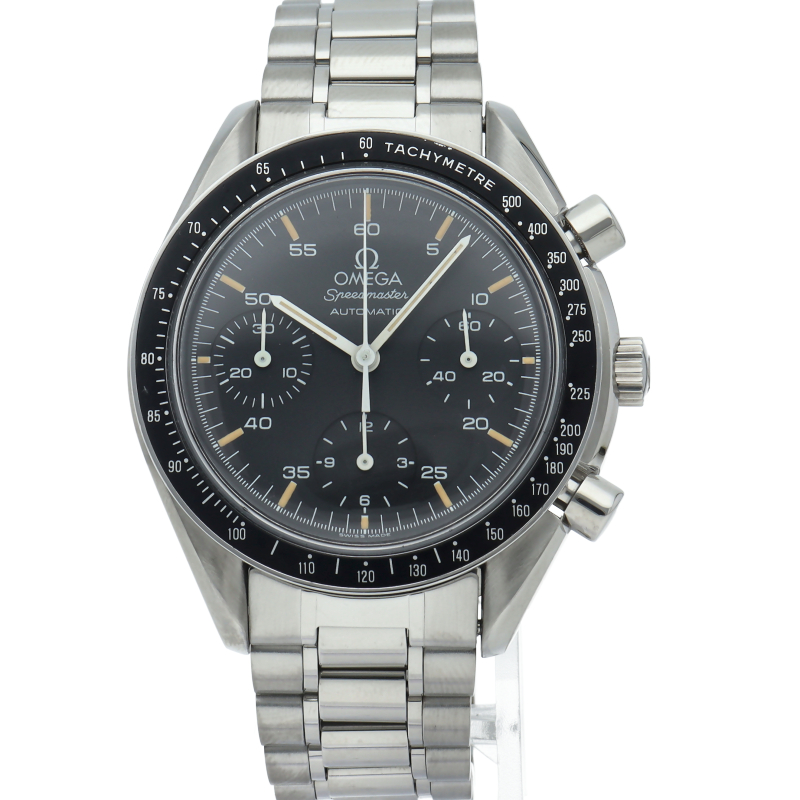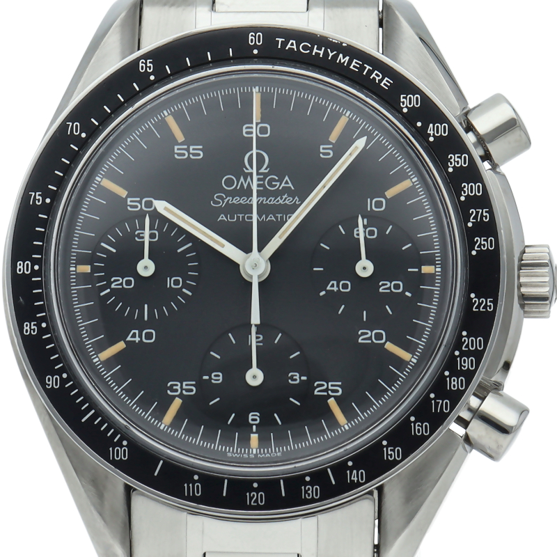 オメガを代表する人気シリーズ「スピードマスター」。プラ風防を使用したレトロな雰囲気かつシンプルにまとまったデザインがスタイルを選ばずにご使用いただけます。