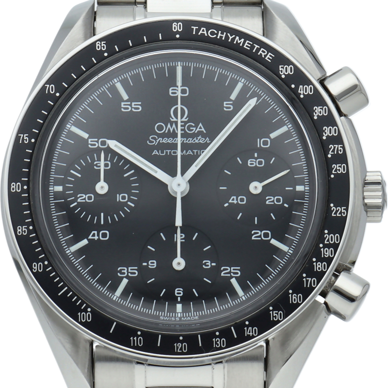 オメガを代表する人気シリーズ「スピードマスター」。プラ風防を使用したレトロな雰囲気かつシンプルにまとまったデザインがスタイルを選ばずにご使用いただけます。