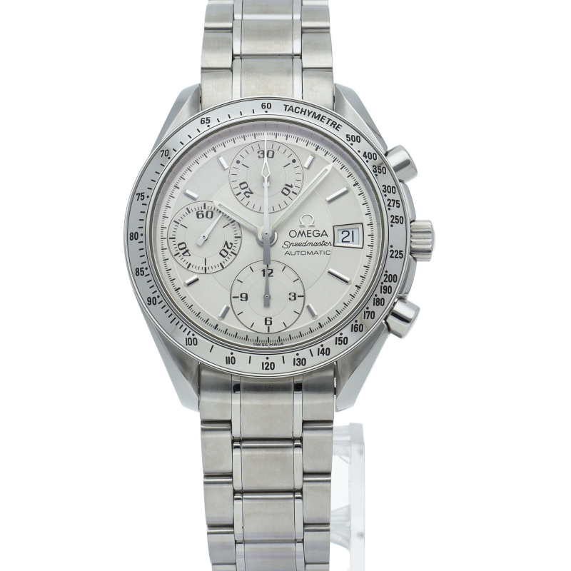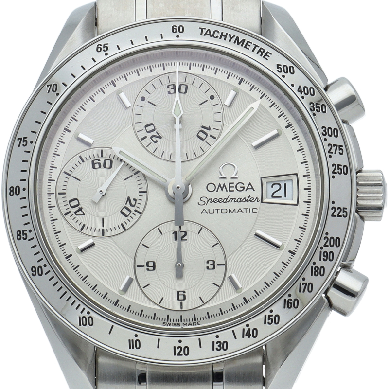 オメガの代表的な人気シリーズ「スピードマスター・デイト」。クロノグラフ・デイト表示機能付きと便利で実用性のある1本です。