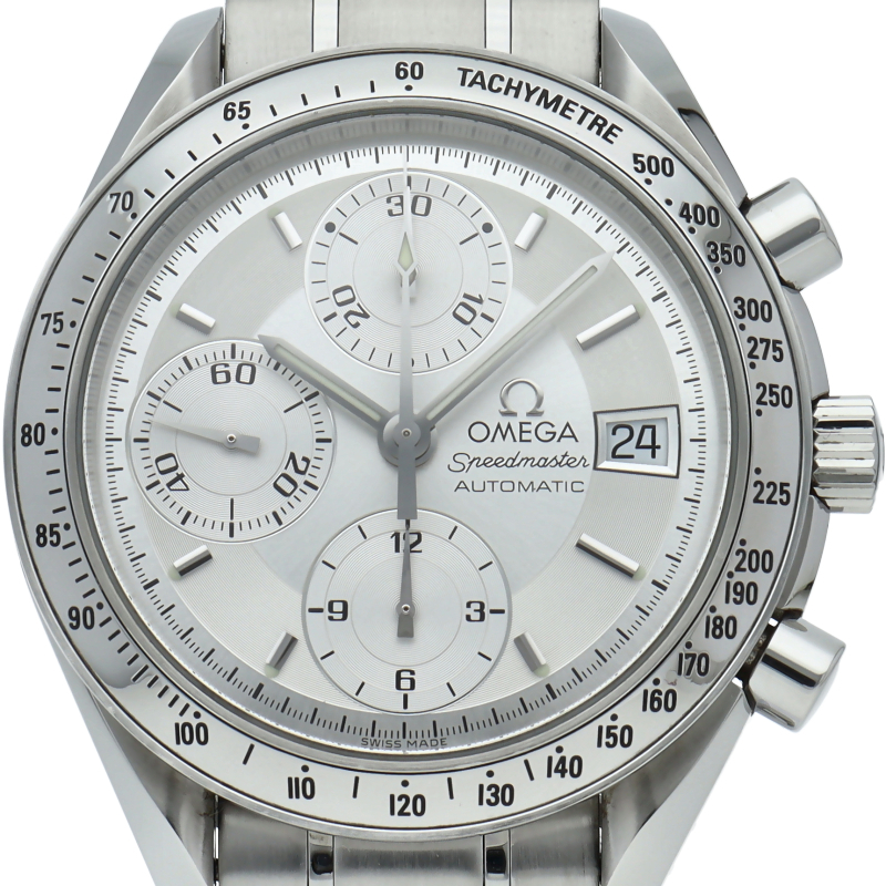 オメガの代表的な人気シリーズ「スピードマスター・デイト」。クロノグラフ・デイト表示機能付きと便利で実用性のある1本です。