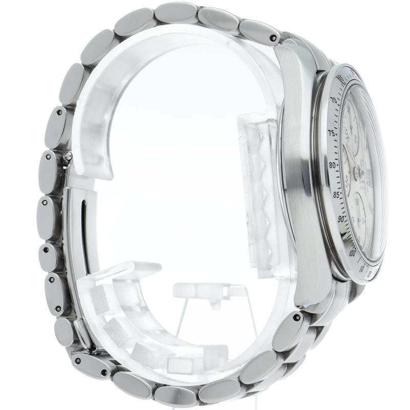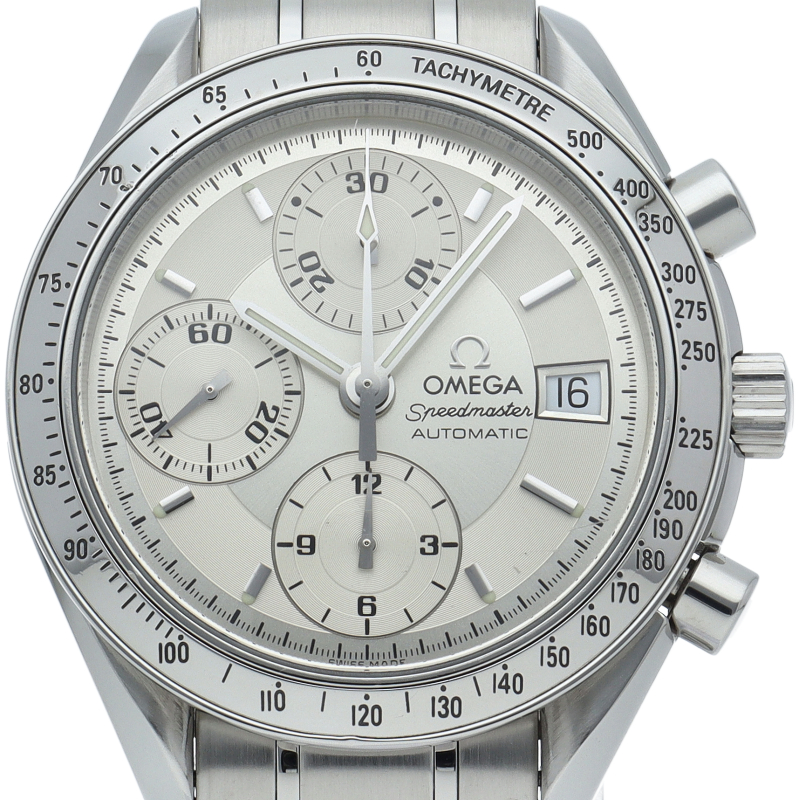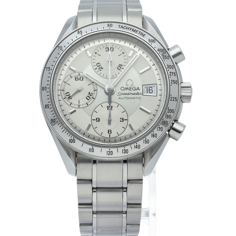 オメガの代表的な人気シリーズ「スピードマスター・デイト」。クロノグラフ・デイト表示機能付きと便利で実用性のある1本です。