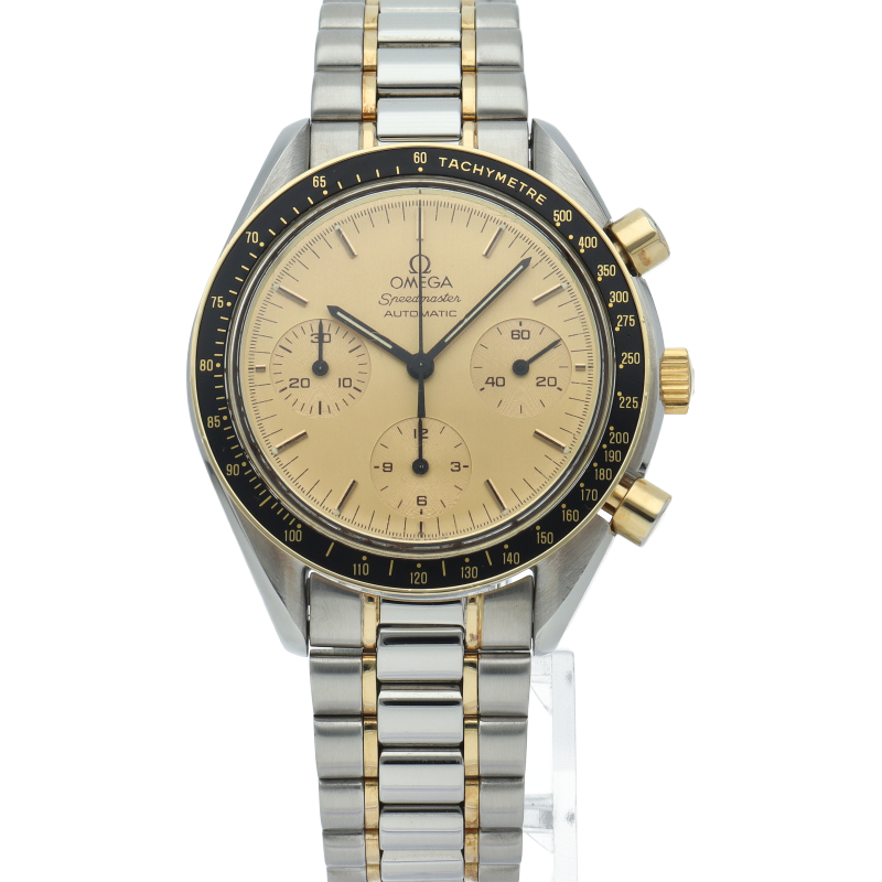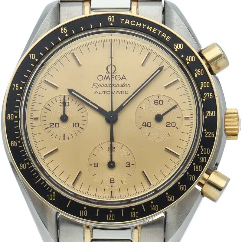 オメガを代表する人気シリーズ「スピードマスター」。プラ風防を使用したレトロな雰囲気かつシンプルにまとまったデザインがスタイルを選ばずにご使用頂けます。シャンパン文字盤やコンビネーションカラーが華やかな印象を与えています。