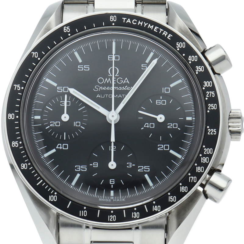 オメガを代表する人気シリーズ「スピードマスター」。プラ風防を使用したレトロな雰囲気かつシンプルにまとまったデザインがスタイルを選ばずにご使用いただけます。