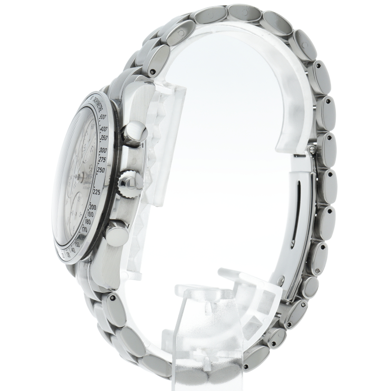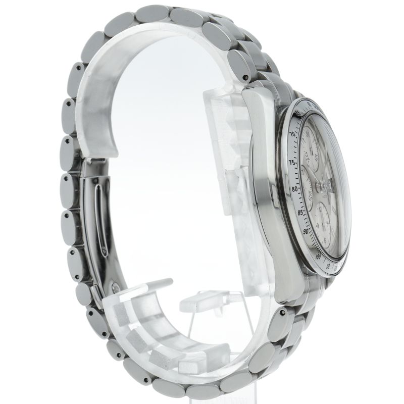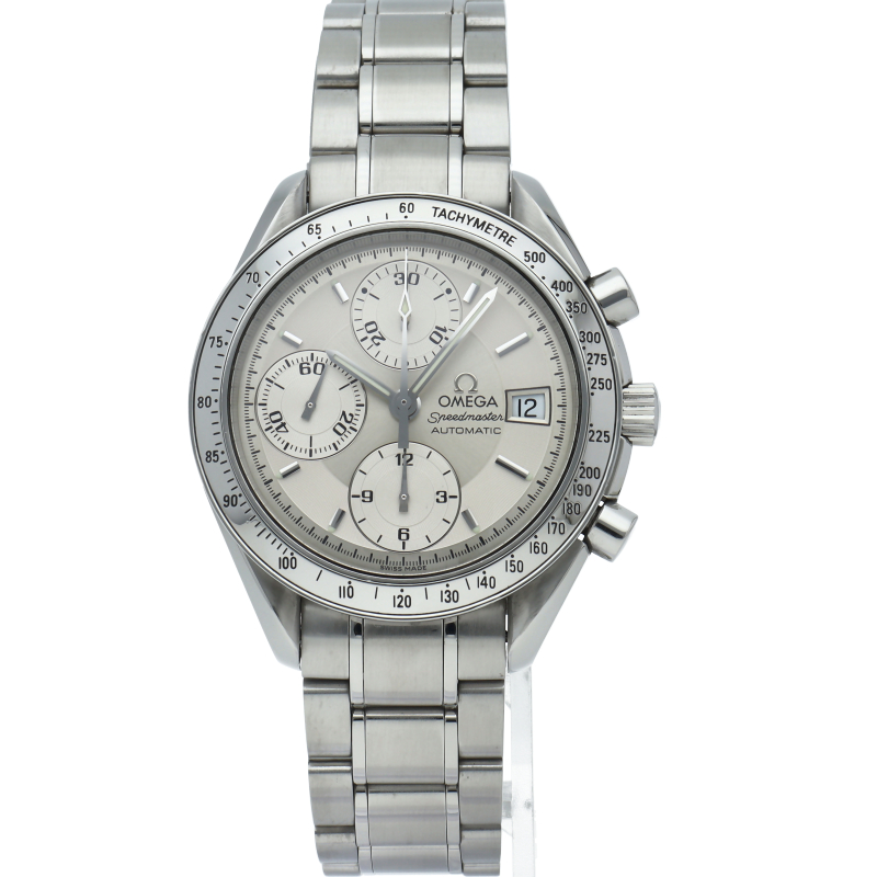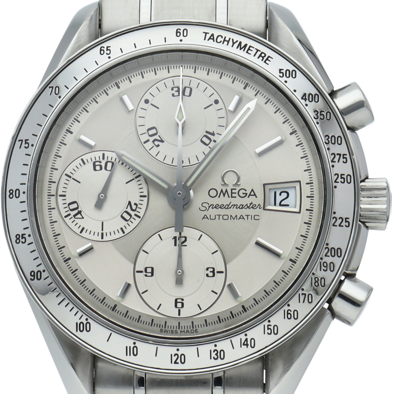 オメガの代表的な人気シリーズ「スピードマスター・デイト」。クロノグラフ・デイト表示機能付きと便利で実用性のある1本です。