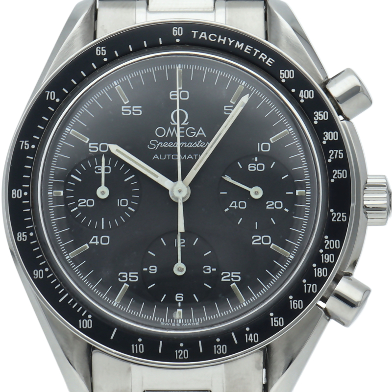 オメガを代表する人気シリーズ「スピードマスター」。プラ風防を使用したレトロな雰囲気かつシンプルにまとまったデザインがスタイルを選ばずにご使用いただけます。