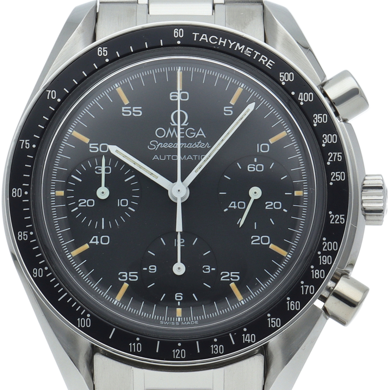 オメガを代表する人気シリーズ「スピードマスター」。プラ風防を使用したレトロな雰囲気かつシンプルにまとまったデザインがスタイルを選ばずにご使用いただけます。