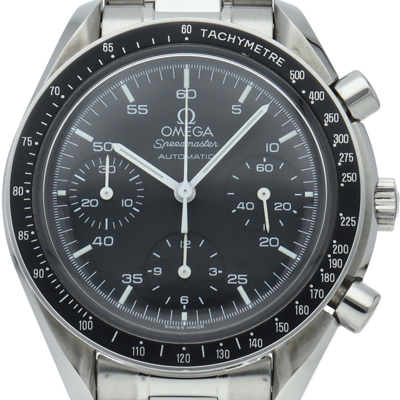 オメガを代表する人気シリーズ「スピードマスター」。プラ風防を使用したレトロな雰囲気かつシンプルにまとまったデザインがスタイルを選ばずにご使用いただけます。