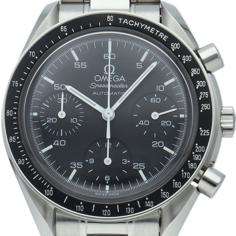 オメガを代表する人気シリーズ「スピードマスター」。プラ風防を使用したレトロな雰囲気かつシンプルにまとまったデザインがスタイルを選ばずにご使用いただけます。